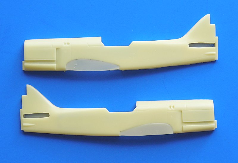 Der einteilige Flügel ist nur an der Vorderseite von einem leichten Grat zu versäubern auch der Rumpf hat nur kleine Angüsse die sich leicht absägen lassen. Das Cockpit ist spartanisch, was aber angesichts der Vorbildinformationen nicht anders zu erwarten war. Einzig des Spornrad mit dem dünnen Resinbeinchen macht mir etwas Sorgen. Dieses sollte vorsorglich durch Draht ersetzt werden.