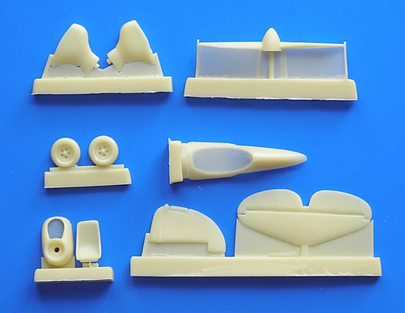 Modell: Ein solch seltener Vogel ist geradezu prädestiniert für die Kleinserienhersteller und Lumir Vesseli hat mal wieder ganze Arbeit geleistet. Wenige Bauteile führen den versierten Modellbauer zum fertigen Produkt. Das Material ist glücklicherweise nicht mehr das grüne sehr harte Material, sondern ein angenehm zu verarbeitender beige-farbener Gießkunststoff. Die Bauteile sind sauber und blasenfrei abgegossen. Für die Haube liegt ein Vakuteil bei, der Rest ist Resin.