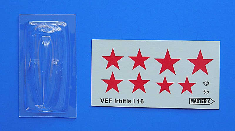 Die Abziehbilder beschränken sich auf zwei VEF Logos und rote Sterne, siehe aber dazu Vorbildteil oben. Bisher gibt es scheinbar kein Foto mit rotem Stern...