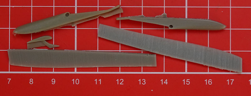 Master-X aus der tschechischen Republik hat erneut einen kleinen Umbausatz gefertigt. In dem Zippbeutel befinden sich gut verpackt fünf sauber gegossene Resinteile. Diese ersetzen direkt die Bausatzteile. So gibt es zwei neue Querruder, zwei neue Ski und einen neuen Hecksporn.