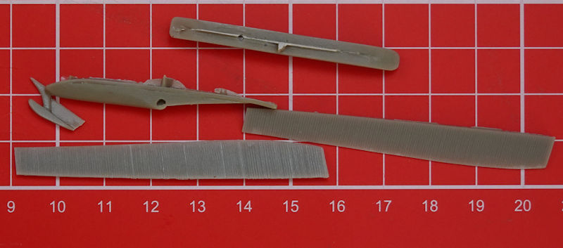 Master-X aus der tschechischen Republik hat erneut einen kleinen Umbausatz gefertigt. In dem Zippbeutel befinden sich gut verpackt fünf sauber gegossene Resinteile. Diese ersetzen direkt die Bausatzteile. So gibt es zwei neue Querruder, zwei neue Ski und einen neuen Hecksporn.