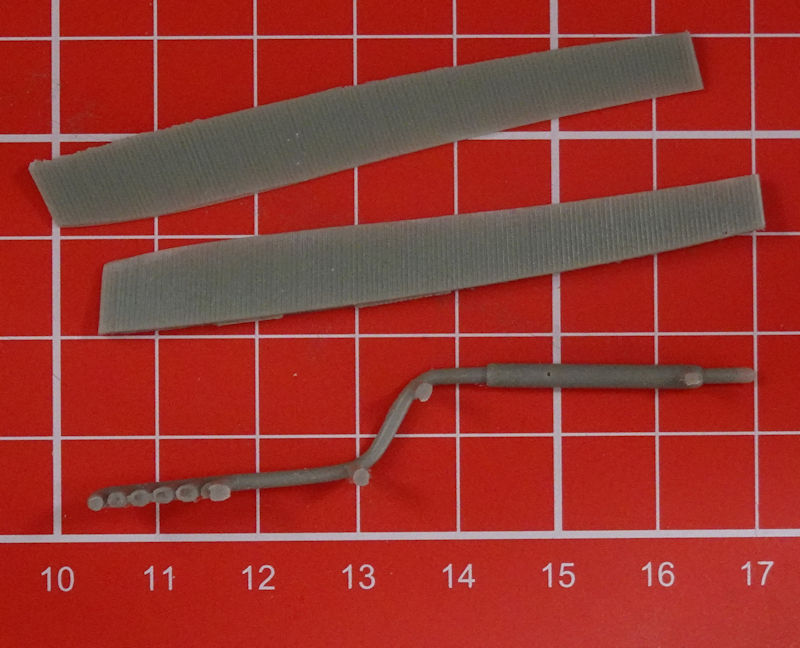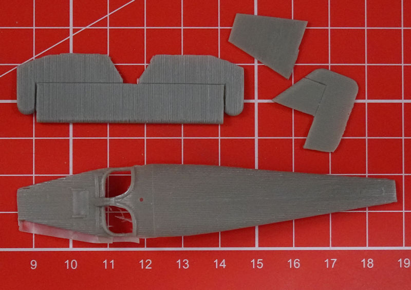 Master-X aus der tschechischen Republik hat einen kleinen Umbausatz für eine späte F.13 gefertigt. In dem Zippbeutel befinden sich gut verpackt sieben sauber gegossene Resinteile. Diese ersetzen direkt die Bausatzteile. So gibt es zwei Querruder, einen Rumpfrücken, eine Rumpfunterseite, ein Seitenleitwerk und die Auspuffanlage..