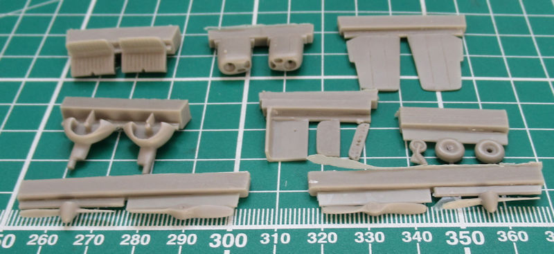 Fürs Cockpit gibt es zwei (?) Sitzbänke, ein Instrumentenbrett und zwei Platten. Einen Steuerknüppel oder eine Zeichnung wie alles zusammengefügt wird sucht man vergeblich. Ich habe dazu auch noch nichts gefunden und daher muss man im Innern etwas kreativ sein.