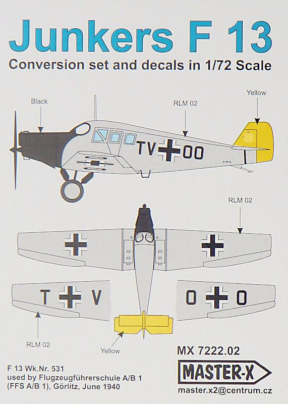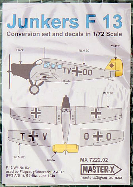 Bausatz: Revell hat leider bis zum heutigen Tag nur die frühe Ausführung der Junkers F 13 herausgebracht (First Look der Edition 2006). Master-X aus der tschechischen Republik hat einen kleinen Umbausatz gefertigt.