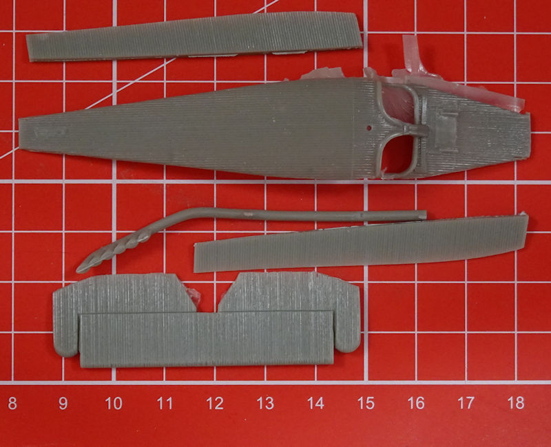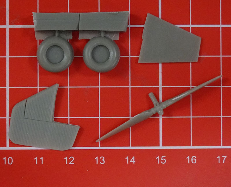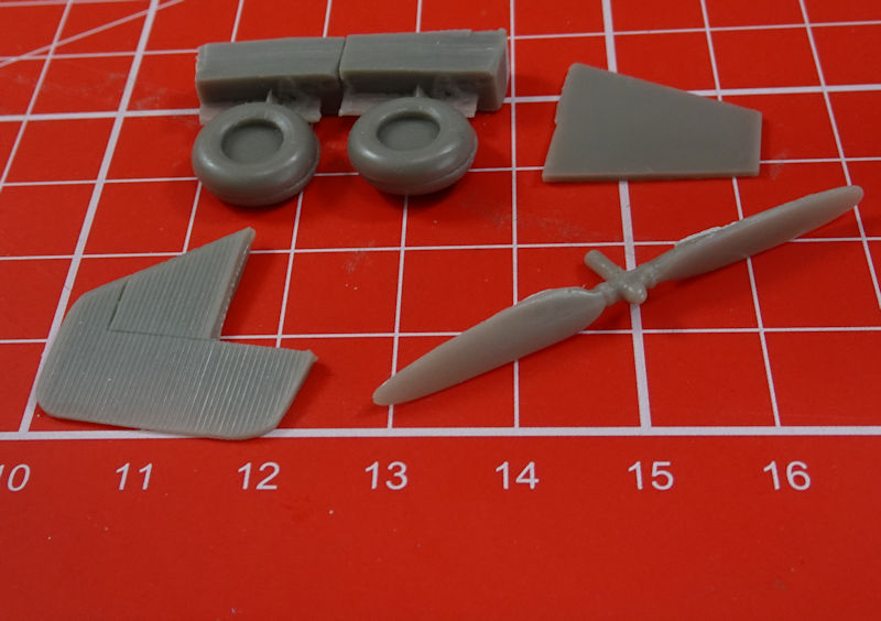 Master-X aus der tschechischen Republik hat einen kleinen Umbausatz für eine späte F.13 gefertigt. In dem Zippbeutel befinden sich gut verpackt sieben sauber gegossene Resinteile. Diese ersetzen direkt die Bausatzteile. So gibt es zwei Querruder, zwei Hauptfahrwerksräder, einen Rumpfrücken, eine Rumpfunterseite, ein Seitenleitwerk, die Auspuffanlage, ein Propeller und zwei Vacukanzeln.