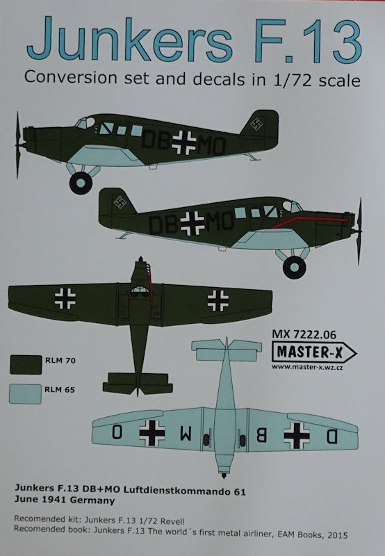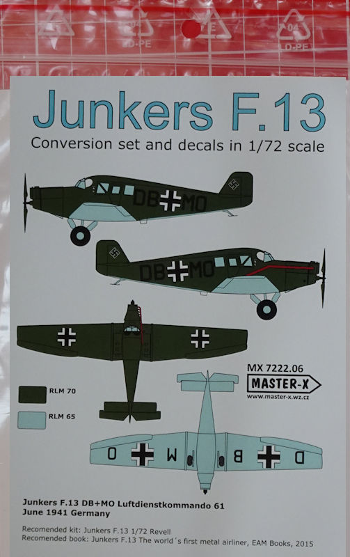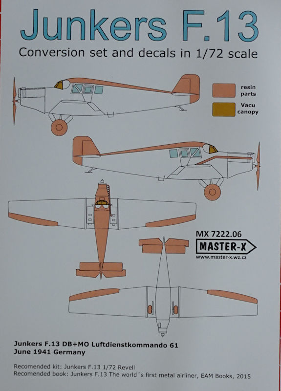 Fazit: Eine sehr gute Idee hat hier Master-X erneut hervorragend umgesetzt. Dieses Umbauset ist auch für Einsteiger auf diesem Gebiet geeignet. Diese späte F.13 in 1/72 der deutschen Luftwaffe ist ein ungewöhnliches Kleid! sehr willkommene Abwechslung!