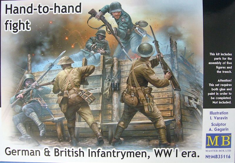 Vorbild: Wenn in Zeitschriften oder im Fernsehen über den Ersten Weltkrieg berichtet wird, sieht man in der Regel von Granattrichtern übersätes Gelände, das von befestigten Schutzgräben durchzogen wird, in dem abgekämpfte und erschöpfte Soldaten auf den nächsten Einsatz warten, in dem man dem Feind oft von Mann zu Mann ins Auge sehen musste. Da der 1. Weltkrieg im Laufe des letzten Jahres von verschiedenen Bausatz Herstellern aufgegriffen wurde, hat sich nun auch Master Box dem Thema gewidmet und einen Figurenbausatz auf den Markt gebracht.