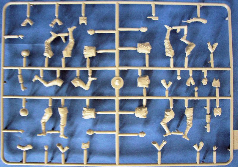 Bausatz: In diesem Bausatz sind drei Figuren deutscher Soldaten, wie auch zwei Vertreter der englischen Seite enthalten, die sich in einer direkten Konfrontation befinden. Im Gegensatz zu den üblichen Figuren Sets hat sich Master Box hier etwas Besonderes einfallen lassen. In der üblichen Box findet man einen Gussast A in grauem Plastik mit den wesentlichen Teilen zum Bau der fünf Figuren, die auch bei näherer Betrachtung in Bezug auf die Details und insbesondere der Köpfe inzwischen sehr gut mit den großen Herstellern mithalten können.