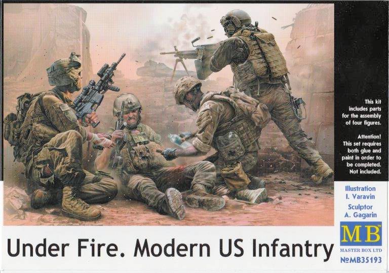 Master Box aus der Ukraine bringt hier moderne US. Infanteristen in den Modellbauhandel. Wie der Name der Verpackung schon sagt stehen diese Soldaten unter feindlichem Feuer. So eine Szene könnte sich im Irak oder Afghanistan abgespielt haben.