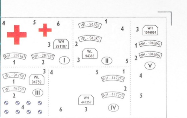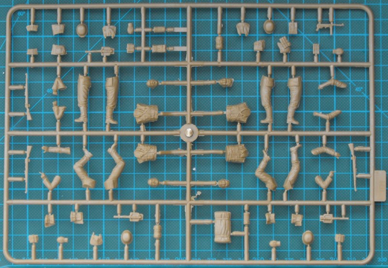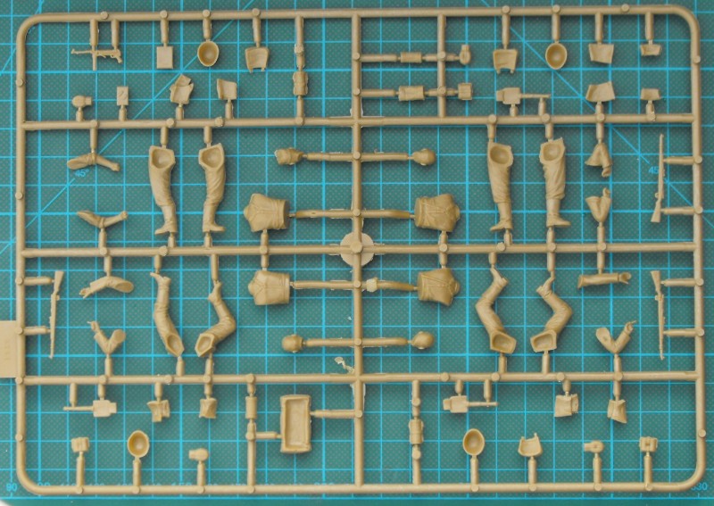 Die Figuren sind in ungewöhnlichen Posen wiedergegeben. Der Spritzguss ist ordentlich und es gibt keinen Versatz. Dafür ist jedes Teil ordentlich zu entgraten. Als Bemalungshinweise dienen die Abbildung auf der Kartonrückseite. Die Hinweise für das Anbringen der Decals findet man in der Bauanleitung. Dort sind dann Hinweise für fünf verschiedene Maschinen.