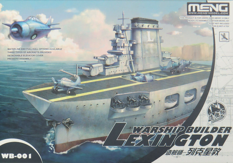 Bausatz: In der Reihe Warship Builder erschien bei MENG kürzlich die USS Lexington. Es ist ein Egg-Kit. In dem attraktiven Stülpkarton befinden sich gut verpackt elf Spritzgussrahmen oder Großbauteile. So gibt es 158 Einzelteile, ein Bogen mit Stickern und die mehrfarbige Bau- und Bemalungsanleitung. Bei der Durchsicht der Bauteile fällt auf, dass die Spritzlinge für die Douglas TBD nicht zu gebrauchen sind. Hier passen die Teile nicht zur Bauanleitung! Schade!
