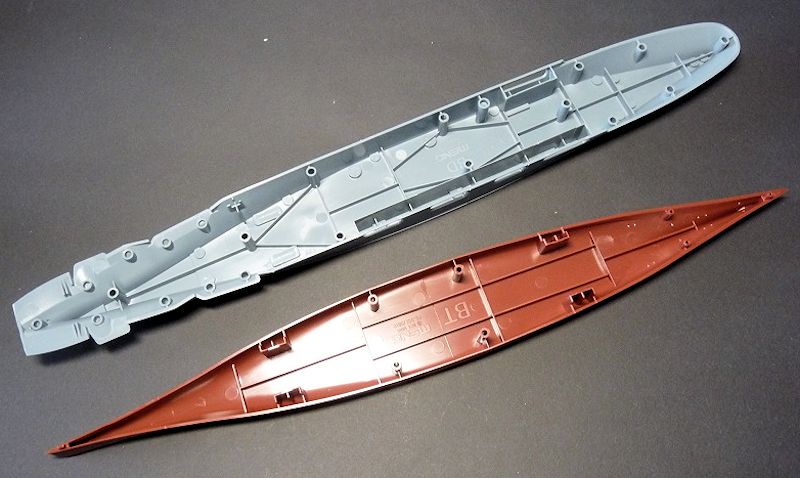Alles ist sehr fein ausgegossen und hat keine Froschhaut oder irgendwelche verbogenen Teile. Auch die erste Steckprobe der Rumpfunter- und Oberseite erfolgt ohne Probleme. Aufbauten und die verschieden Geschütze sind gut detailliert. Der Rumpf selber ist eine Augenweide mit seinen verschieden Beibooten. Auch sind drei unterschiedliche Flugzeugtypen vorhanden: jeweils sechs F4F Wildcat, SBD Dauntless und TBD Devastator.