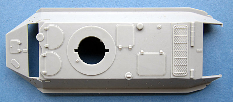 Bausatz: Die Firma MikroMir ist immer mal wieder für eine Überraschung gut. Dieses Modell im Maßstab 1/48 ist eine solche. Insgesamt erinnert der Schachtelinhalt an die Bausätze von Ace. Auf den Ersten Blick sehr grob erschließen sich die Qualitäten erst beim näheren Hinsehen. Der Aufbau der Wanne ist recht clever gelöst und ermöglicht es, dass die Auswerfermarken nach dem Zusammenbau versteckt sind.