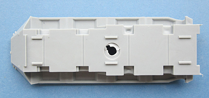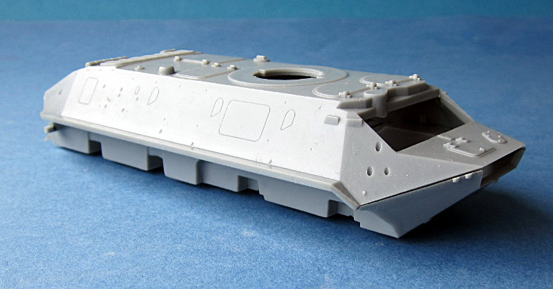 Das Fahrzeug kann aus dem Kasten nur geschlossen dargestellt werden. Daher gibt es auch keine Innenausstattung. Alle 8 Räder sind in Neutralstellung für die Geradeausfahrt anzubringen. Hier bedarf es Eigeninitiative um einen dynamischeren Eindruck zu erzeugen. Es gibt ein paar Sinkstellen, aber diese sind Später alle durch Teile verdeckt. Gerade die Fahrwerksteile sind überraschend filigran und gratarm. An den Formtrennstellen ist natürlich etwas Nacharbeit erforderlich.