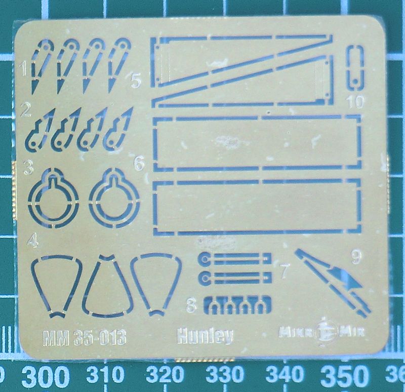 Einige im Original dünne Metallteile hat man bei Mikro-Mir aus geätztem Metall hergestellt. Daraus entstehen auch die Teile für die Schraube und das Ruder. Auch der Spierentorpedo wird mittels zweier Metallteile auf dem Ausleger befestigt.