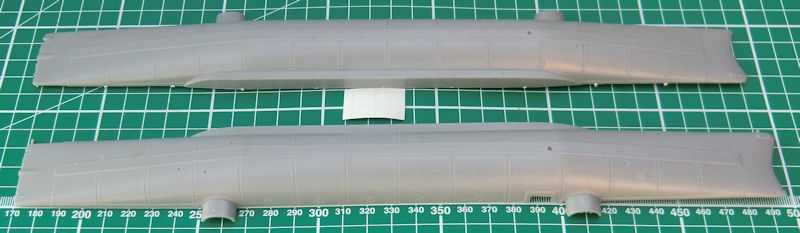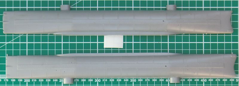 Natürlich handelt es sich um einen typischen in Short-Run-Technologie hergestellten Bausatz. Aus der Form können nur relativ wenige Exemplare entstehen. Meist sind es um die 1000 Stück und dann ist die Form verschlissen. Die beiden Rumpfhälften haben schöne Strukturen. Ich finde es gut, dass die Nieten nicht zu deutlich sind, sondern etwas "verwaschener" und damit nicht zu präsent.