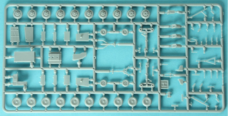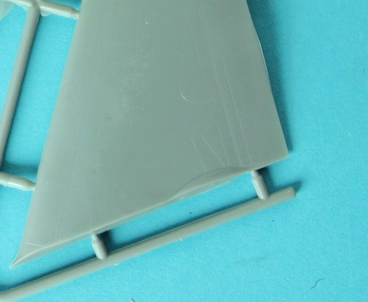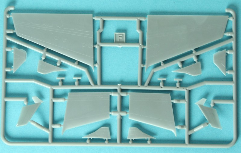 Die Tragflächen verfügen über zweitteilige Hinterkanten, das Plastik ist aber allerdings so dünn, dass das Licht durchscheint. Etwas Vorsicht ist daher auch bei den Flügelspitzen notwendig, damit sie nicht abrechen. Die Winglets sind jeweils aus einem Teil ausgeführt. Für die Anschluss und die Montage an den Rumpf gibt es einen Holm. Das Fahrwerk trifft m.M. nach sehr gut den Kompromiss zwischen Detailliertheit und Stabilität. Etwas ungewöhnlich sind die geteilten Räder. Dafür verfügen sie über sehr detaillierte Naben und Bremsrotoren. Auch sind die Felgen gut abgegrenzt von den Reifen, was auch die Bemalung erleichtert. Immerhin gilt es 24 Seiten zu bemalen!