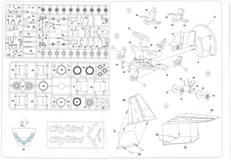 Die dritte Möglichkeit ist die OO-CTB der Citybird aus Belgien. Kurioser Weise ist diese aber nicht auf der Bemalungsanleitung abgebildet. Eine Besonderheit ist auch, dass man die große Rumpfaufschrift sowie das größere Leitwerkslogo maskieren soll, wofür die vorgestanzten Masken auf eine Bogen enthalten sind. Allerdings ist diese Maschine nur auf der Seite des Kartons abgebildet, hier muss man also auf andere Quellen wie das Internet und Literatur ausweichen.