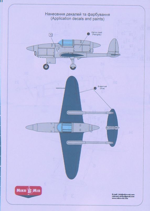 Auf der mehrfarbigen Bemalungsanleitung wird der Platz des einzigen Decals gezeigt. Die Farbangaben sind verbal auf Ukrainisch oder Englisch.