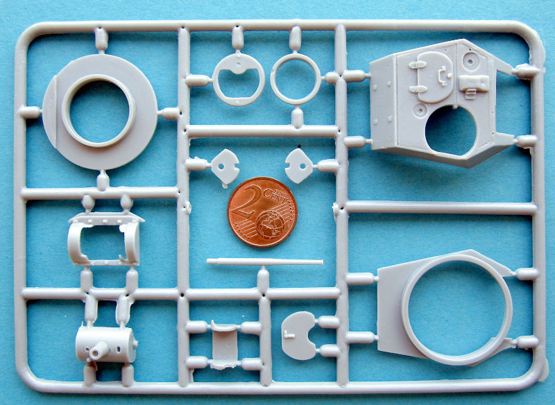 Die Spritzrahmen sind sehr schön detailliert und mit vielen Nieten versehen. Panzerexperten werden hier sicher einigen Fehler und Auslassungen finden, aber für meinen Geschmack ist dies ein sehr schönes kleines Modell. Allerdings finden sich an einigen Stellen etwas Grat und Fischhaut. Neu gegenüber dem T-70 Bausatz ist der Rahmen K an dem sich der neue größere Turm und sein Drehlager, das einfach auf das Wannendach in das Drehlager des kleineren T-70 Turms eingesetzt wird. Man kann also direkt aus dem Bausatz auch einen T-70 bzw. T-70M bauen (eine entsprechende Bauanleitung findet man z.B. bei Scalmates), es fehlen natürlich die Decals und auch der Fotoätzteilbogen ist etwas anders.