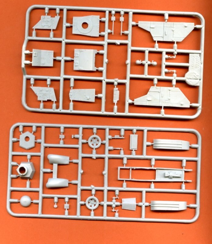 Bausatz: Aus drei weißen und zwei grauen Rahmen entsteht der BA-27M. Die weißen Rahmen sind bereits aus den GAZ-AAA Bausätzen bekannt,d.h. 50% der Teile sind für die Katz ...äh Restebox. Die anderen Komponenten sind sauber gegossen und fast ohne Grat.