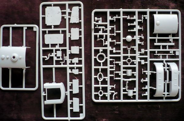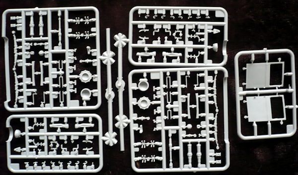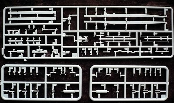Der Bausatz besteht aus gesamt 459 graufarbigen Plastikbauteilen, einem Spritzling mit Klarsichtteilen, einem Ätzteilbogen mit 184 Teilen und zwei Abziehbilderbögen. Die Bauteile weisen sehr detaillierte Oberflächen mit feinen Gravuren auf.