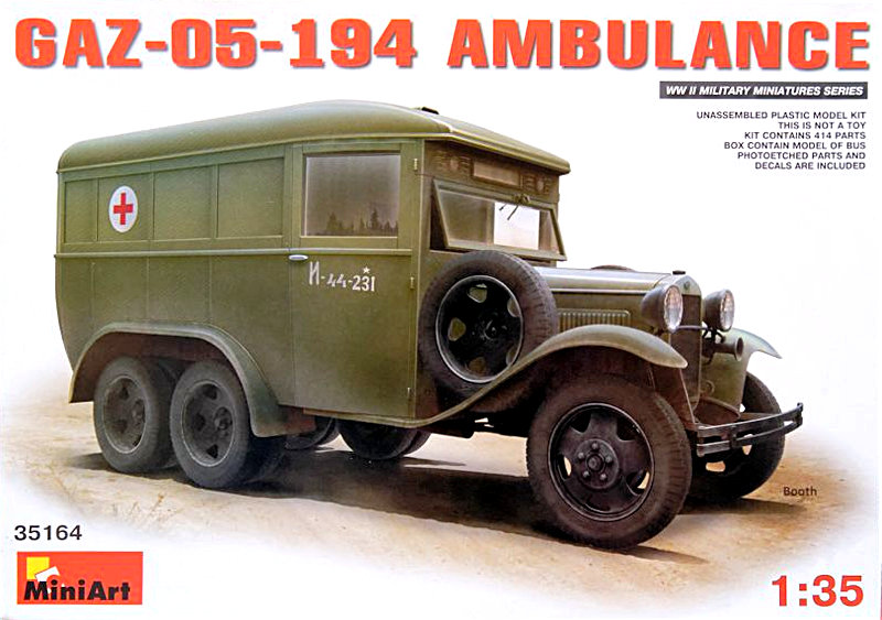 Zwischen 1936 und 1945 entstanden ca. 237 Stück mit der Bezeichnung GAZ-05-193. Hierzu erhielt das AAA-Fahrgestell eine Buskarosserie. Da diese nur 9 Sitzplätze hatte wurden auf dieser Basis auch Spezialausführungen angefertigt. Eine dieser Versionen war ein Sanitätsaufbau den MiniArt hier herausgebracht hat.