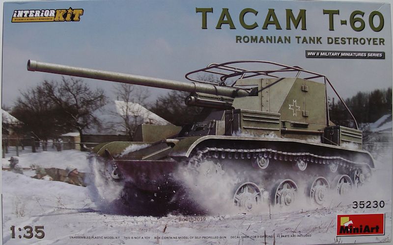 Vorbild: Der Tacam T-60, ein Panzerjäger, war eine einfache improvisierte Lösung der rumänischen Armee. Von erbeuteten T-60 Panzern der Roten Armee wurde der Turm entfernt. Als Waffe erhielt sie die zur 7.62 cm PaK 36(r) modifizierte ebenfalls erbeutete 76 mm Kanone M1936 (F-22).