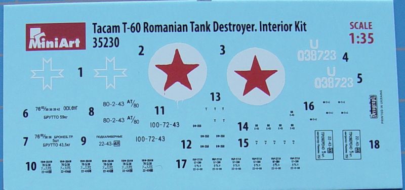 Der Decalbogen enthält Markierungen der rumänischen Armee, wie Kreuze und Turmnummer.