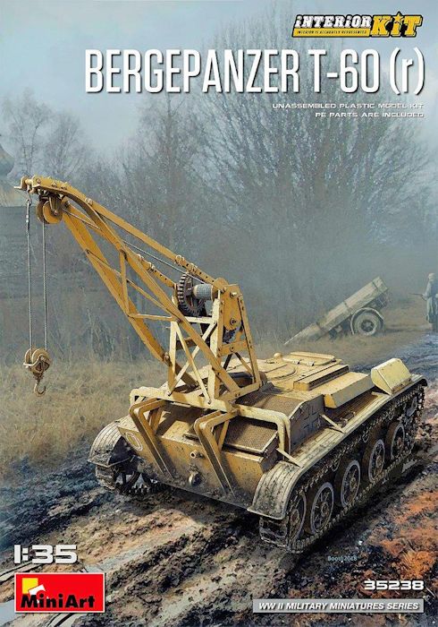 Bausatz: Der ukrainische Hersteller MiniArt bringt einen weiteren sowjetischen T-60 mit kompletter Inneneinrichtung, der im "Feldumbau" zu einem Bergepanzer wurde, heraus. Sehr gut gelungen ist der 3 ton Behelfskran mit seinen Befestigungen am Panzer.