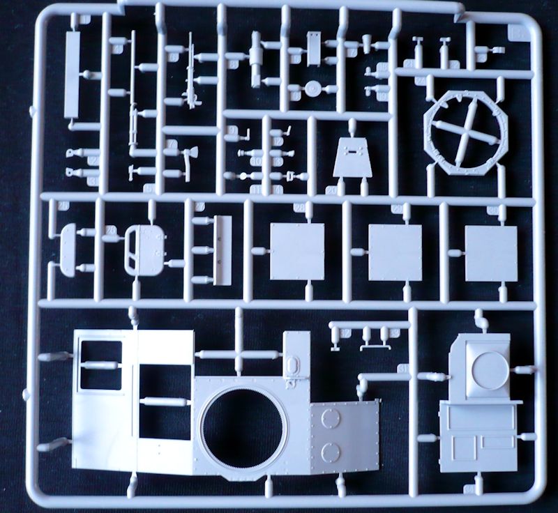 Bausatz: Schon beim Öffnen des prall gefüllten Stülpkarton fällt auf, dass man hier wieder in Sachen Qualität und Detailtreue ein Highlight in den Händen hält. Der Bausatz desT-60 mit dem rundlichen T-30 Turm enthält eine komplette Inneneinrichtung, Munition, hervorragende Motoren-und Getriebenachbildung und transparente Teilen für die Scheinwerfer. Zu den ca. 470 sauber in hellgrau gespritzten Plastikteile ca. 470 Teilen kommt noch ein Bogen Ätzteile dazu.