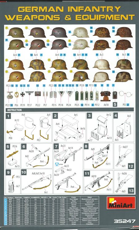 Miniart geht aber noch einen Schritt weiter, denn mit einer kleinen Ätzplatine mit Gurten, Abzeichen, und Orden sowie Brillengestellen ist es nun nicht mehr erforderlich derartiges separat nachzukaufen oder selbst herzustellen.