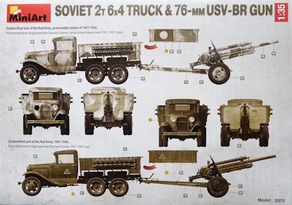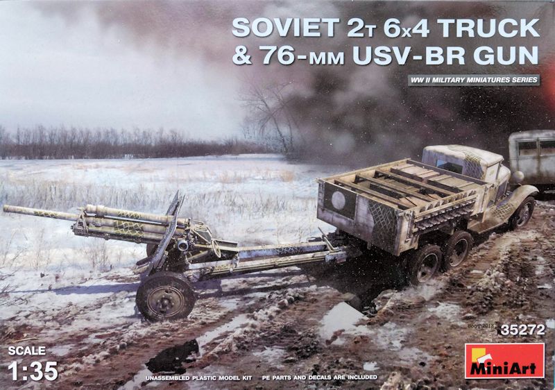Vorbild: Unter diesem etwas kryptischen Namen verbirgt sich der bereits in verschiedenen Versionen von Mini Art herausgebrachte GAZ - AAA (das dritte A steht für die zweite Hinterachse) der zwischen den Jahren 1934-1943 in einer Stückzahl von 37.373 Exemplaren gefertigt wurde. Der Motor hatte eine Leistung von 50 PS aus einem Hubraum von 3.285 cm³. Die Höchstgeschwindigkeit betrug 65 km/h. Der LKW hatte ein Leergewicht von 2.475 kg und konnte bis zu 2.000 kg zuladen bzw. ziehen.
