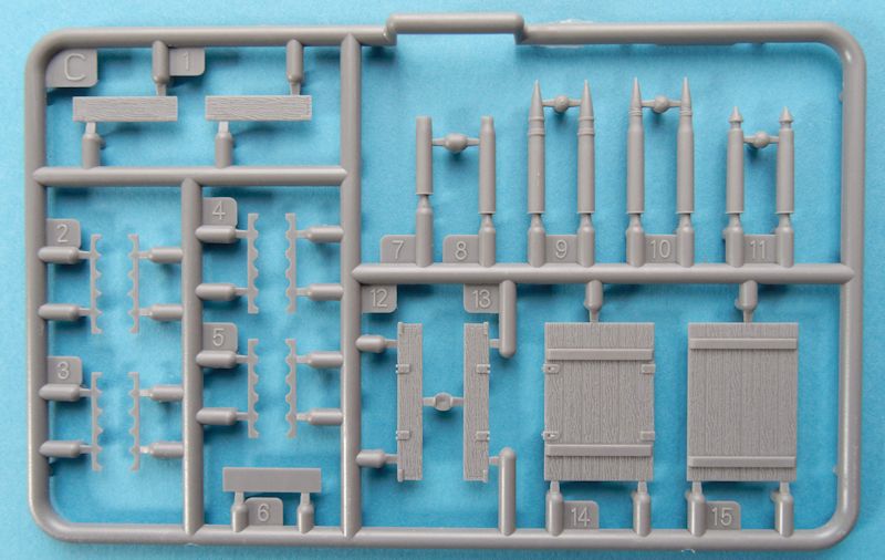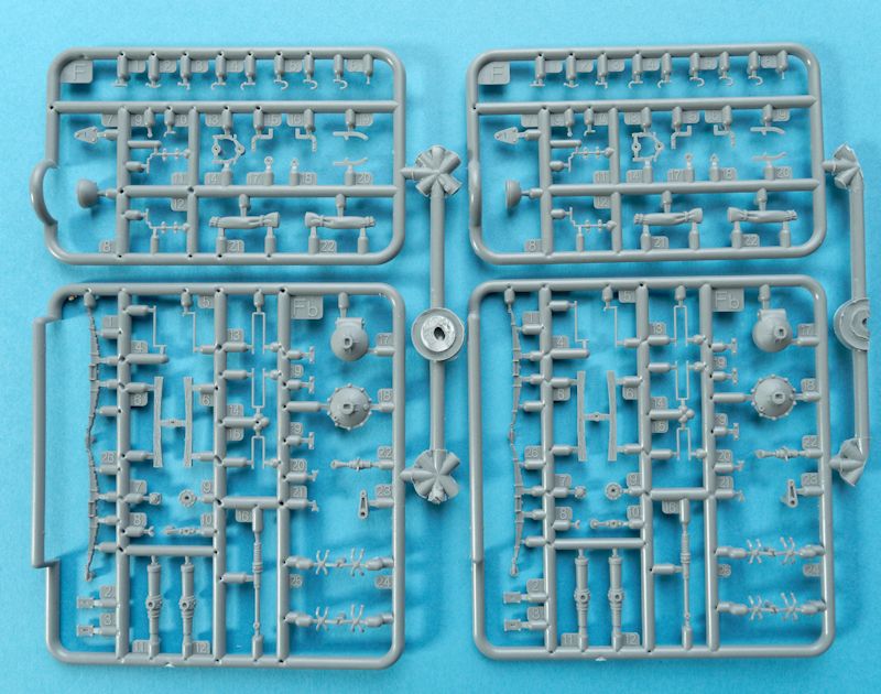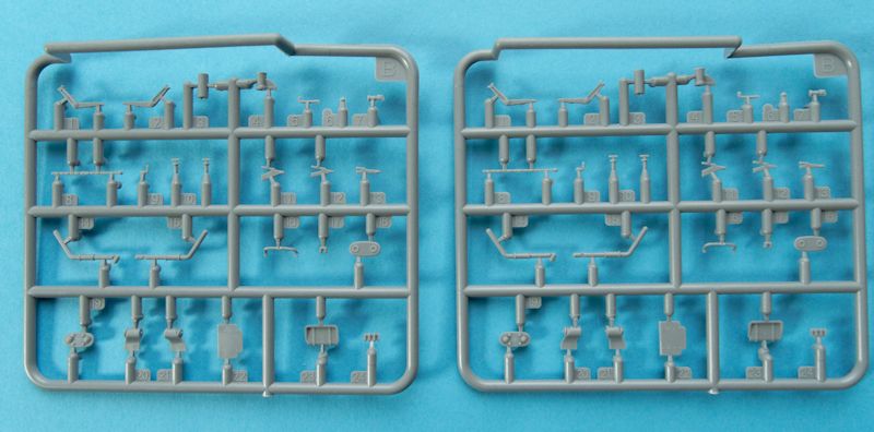 Die Qualität der Detaillierung aller Teile ist ohne Zweifel wirklich hervorragend. Die Ansätze und Auswerfer sind günstig angebracht und brauchen so weder Schleifpapier noch Spachtel. Überhaupt findet man bei diesem Hersteller auch eine gute zu bearbetende Kunststoffmischung die flexibel genug ist, um auch zerbrechliche Kleinteile gut vom Spritzling lösen zu können.