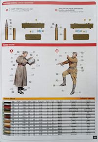 Neben einem klaren Spritzling, für die Verglasung der LKW-Kabine, befinden sich auch zwei schön detaillierte Figuren in guten Posen. Einer befüllt mit einem Eimer den Kühler, während der andere gerade beim Einsteigen ist. Auf der Ladefläche des GAZ, die eine gut strukturierte Holzmaserung besitzt, können sechs Munitionskisten geladen werden. Diese lassen sich auch geöffnet bauen, da sie sogar mit verschiedenen Patronen für das Geschütz befüllt werden können.