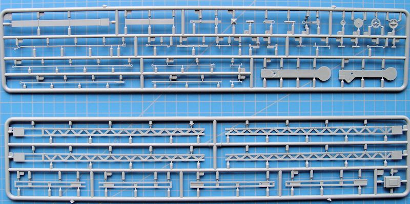 Bausatz: Miniart liefert für Eisenbahnfans das Zubehör für die gesamte Lokpalette von Trumpeter. Das Modell präsentiert sich in einen sehr unüblichen, aber dem Modell angepassten, Karton: lang und schmal. Für unsere Kartonstapler eine Herausforderung.