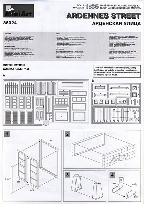 Aus den Einzelteilen lässt sich eine zeitgenössige Hausruine mit passendem Straßensegment erstellen. Mit der passenden Beigabe von Haus-Zubehör wie Fenstern, Türen und Regenrinnen lässt sich Hausruine perfekt dekorieren. Die Detaillierung der Vacu-Plastikeile sowie der Hauszubehörteile ist gut gelungen. Die Verarbeitung der Tiefziehteile ist relativ unproblematisch, eine gute Anleitung findet man auf der Homepage von MINIART (Assembly Guide): http://www.miniart-models.com/