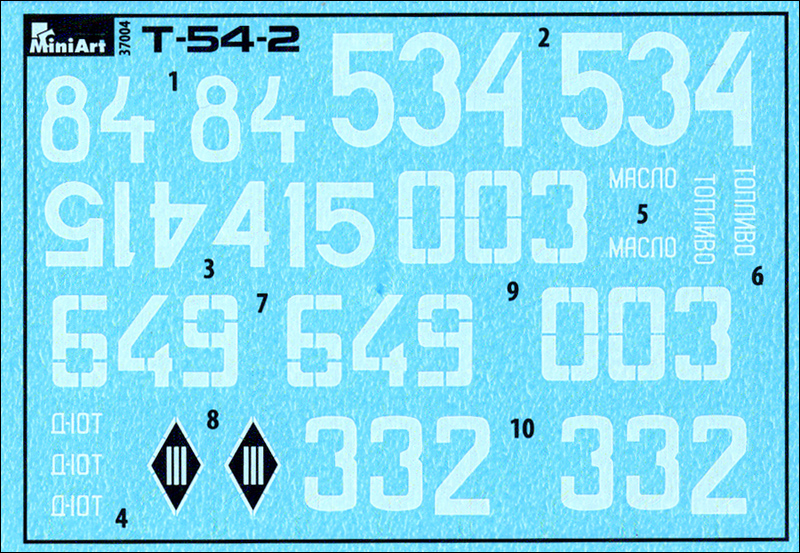 Gegenüber dem Bausatz des T-54-1 sind folgende Spritzlinge neu hinzugekommen: Cb, F, Gc, Gd, Ge, Hg, Jd und Ka sowie die beiden neuen Ätzteilplatinen M33 und M34.