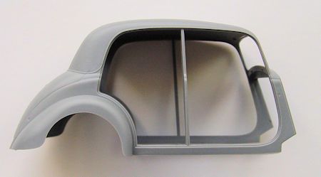 Der Rahmen besteht aus einen einzigen Bauteil. So bleibt alles schön "gerade". Eine gut gelungene Darstellung der Federung des Fahrwerkes ist vorhanden. Die Räder bestehen aus Segmentscheiben. So erhält man bei sauberen Arbeiten ein schönes Profil.