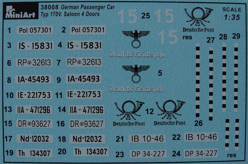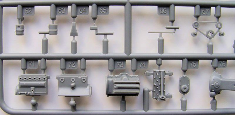 Es gibt Klarplastik für die Fenster und Scheinwerfer. Ein kleiner Bogen mit Ätzteilen für die Bauteile, die man sonst aus einen Messingblech nachbauen müsste. Er enthält Lüftergitter, Griffteile, Winkelsegmente oder Versteifungen.