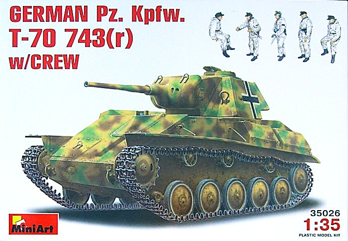Vorbild: Der T-70 entstand in der Sowjetunion 1941 als Ablösemuster der T-60. Ziel war es ihn ähnlich beweglich zu gestalten wie den T-34. Als leichter Panzer hatte der T-70 den größten Nachteil in der 2-Mann-Besatzung. Dadurch wurde es schwierig den Einsatz zu koordinieren. Die Massenproduktion begann im März 1942 und im September wurde die Produktion auf den verbesserten T-70M umgestellt. Im Herbst 1943 lief die Produktion aus. Bis dahin wurden 8226 Panzer in drei verschiedenen Werken gebaut. Er wurde u.a. von den polnischen Armeeeinheiten und dem Tschechoslowakischen Korps eingesetzt. Auf deutscher Seite wurden die erbeuteten T-70 und T-70M in den Polizeieinheiten im Hinterland und ohne Turm als Artillerieschlepper eingesetzt. Bewaffnet waren die Fahrzeuge mit einer 45mm Kanone und einem 7,62mm DT MG.