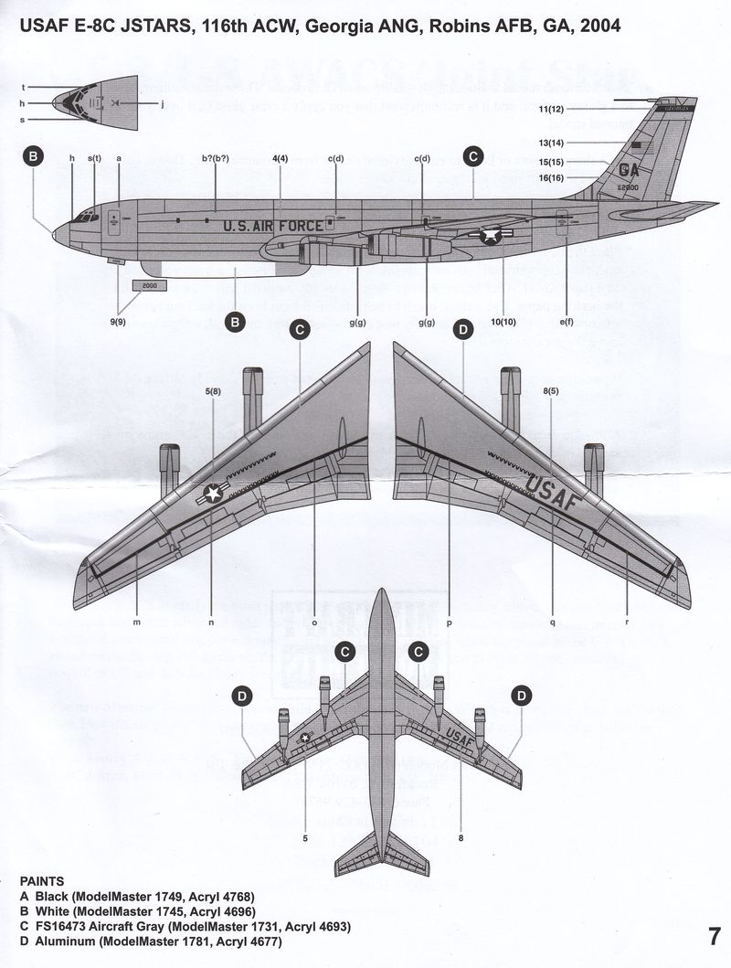 Das Vorbild (Aus Wikipedia): Boeing E-3 Sentry ist die militärische Bezeichnung für eine Boeing 707-320, die als AWACS-Luftaufklärer bei den Luftwaffen mehrerer Staaten im Einsatz ist. Auffälligstes äußeres Merkmal ist das AN/APY-1-Suchradar über dem Rumpf. Der Erstflug der beiden als EC-137D bezeichneten Maschinen erfolgte am 9. und 10. Februar 1972. Die ab Januar 1973 folgende offizielle Entwicklung des neuen AWACS-Systems lief unter der Bezeichnung E-3A Sentry. Der Erstflug des ersten Vorserienmodells erfolgte 21. Juli 1975.