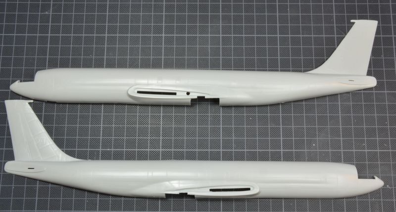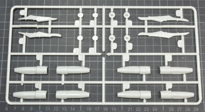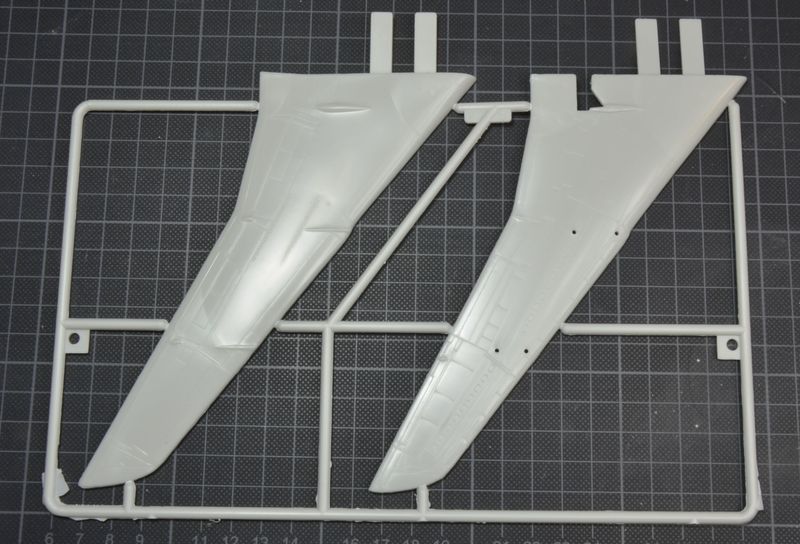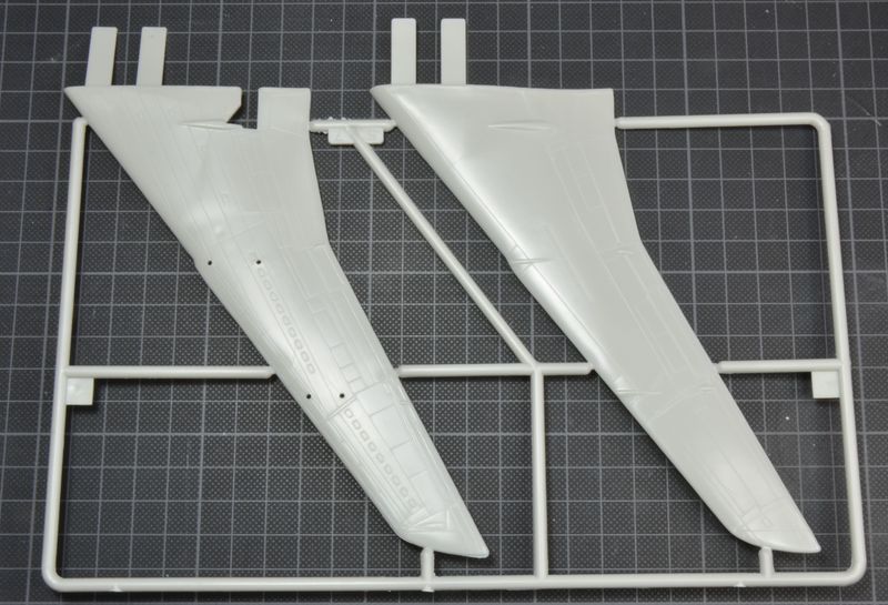 Alle Teile sind ausreichend graviert. Die Tragflächen bestehen aus einer Ober- und Unterschale. Die Hinterkanten werden somit recht dick. Hier könnte man das Material etwas herunterschleifen. Die Triebwerke sind leider wenig detailreich und stimmen wohl auch nicht ganz in der Form. Schade, hier hätte man den Spritzrahmen der KC-135 verwenden können.