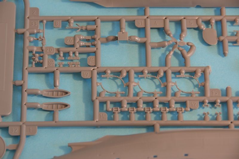 Gussast B (Bild 5) Gussast B enthält weitere Details, die generell sauber und fein gegossen sind. Teile wie Ablaufgerüste für Wasserbomben und Schornsteingitter sind aber schwer aus Spritzguss herzustellen und die hier vorhandenen Teile sehen wie erwartet nicht besonders gut aus. Der ehrgeizige Modellbauer wird sie durch Fotoätzteile ersetzen. Er wird außerdem auch die Öffnungen der Lüfter ausbohren.