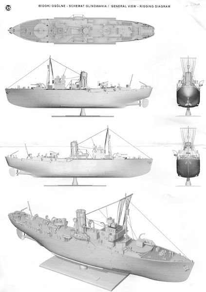 Bemalungsanleitung: Die Bemalungsanleitung ist in Farbe gedruckt und besteht aus Steuerbord- und Backbordansichten, aber leider gibt es keine Ansicht von oben.