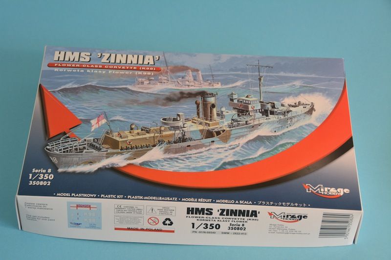 Vorbild: K 98 HMS Zinnia war eine Korvette der Flower-Klasse. Die Korvetten der Flower-Klasse wurden Anfang 1939 schnell entwickelt, als die Royal Navy verstand, dass ein Krieg mit Deutschland vor der Tür stand, und dass sie nicht genug Begleitschiffe hatte, um die Handelsflotte zu beschützen. Die Smiths Dock Company bot einen Entwurf an, der auf ihrem Walfänger ,,Southern Pride'' basierte. Die Korvetten konnten schnell und billig in großer Stückzahl von kleinen Werften gebaut werden. Insgesamt wurden 271 Flower-Klasse Korvetten von britischen, kanadischen und französischen Werften gebaut.