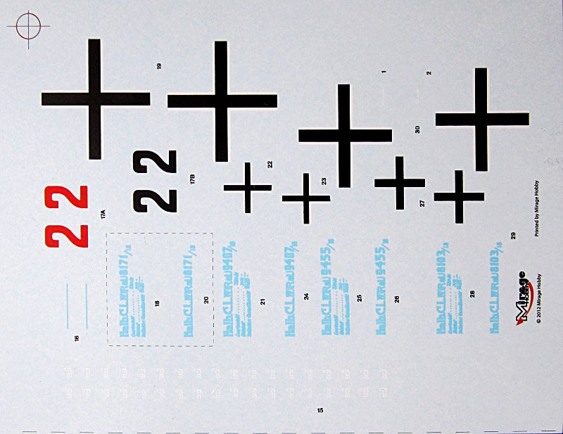 Zur Qualität der Decals lässt sich wenig sagen. Sie wirken sehr dünn und die Balkenkreuze sind nicht verdruckt. Die restlichen Markierungen sind alle einfarbig. Losenge liegt nicht bei und muss separat erworben werden! Die Art der Anbringung des Rautenstoffs ist aber beschrieben.