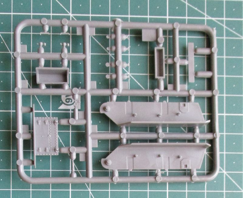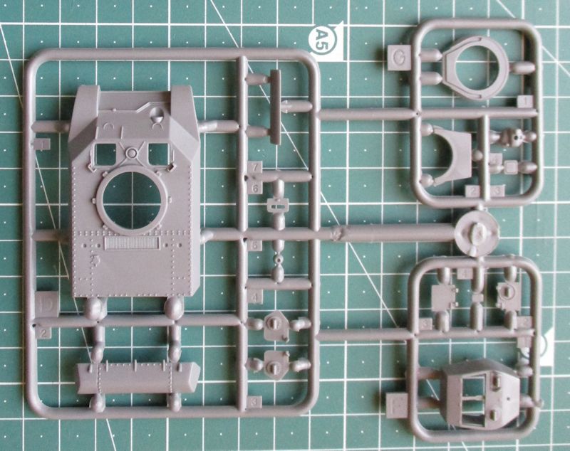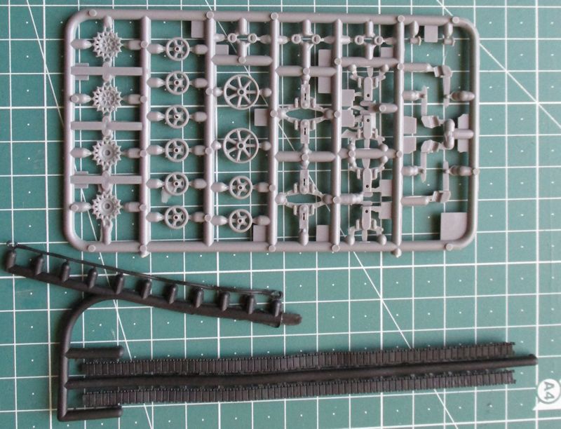 Alle Teile sind sauber und gratfrei wiedergegeben. Die Panzerplatten geben mit einer schön gestalteten aufgerauten Oberfläche die Gussstruktur gut wieder. Hervorzuheben ist das filigrane Fahrwerk. Weniger positiv ist die Gummikette. Einige Teile sind leider etwas dick angegossen so das man gerade bei den Kleinteilen aufpassen muss, dass sie beim Abtrennen nicht brechen.