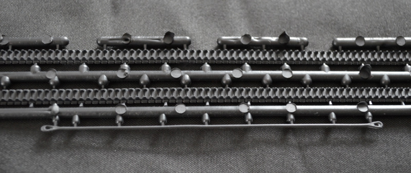 Mit diesem Bausatz lässt sich ein später M5 bauen, der in der Normandie 1944 zum Einsatz kam. Auffälligstes Merkmal ist hier wohl der von der Truppe angebrachte „Pflug” zum Durchtrennen der dichten Bocage-Hecken. Die alliierten Truppen fertigten diese meist aus den deutschen Hindernissen, die an den Strandabschnitten verteilt waren. Der „Pflug” im Bausatz ist relativ dünn gespritzt, kann aber ggf. noch dünner geschliffen werden. Die Vinylketten weisen Greifer auf, die oft in dieser Kriegsphase angebracht wurden. Die Ketten sind sauber gespritzt, gerade, dünn, weisen keine Auswerfermarken auf und bleiben sogar in der Richtung, in die sie gebogen werden. Lediglich leichte Fischhäute sind an allen Kettengliedern vorhanden. Das Abschleppseil aus Vinyl hingegen weist keinerlei Struktur auf, weswegen ich zu einem Metallseil rate. Mir gefällt besonders, dass alle Luken geöffnet dargestellt werden können und dass alle Werkzeuge und Griffe separat beiliegen. Nur das MG M1919 sieht sehr rudimentär aus. Die Ätzteile enthalten die Scheinwerfer-Schutzbügel und ein Sichtschild für den Kraftfahrer, welches auch als Plastik beiliegt. Beide Schilde gefallen mir nicht, da der aus Plastik zu dick und nicht sauber gespritzt ist, das Ätzteil hingegen vorne nicht das zylindrische Bauteil aufweist. Außerdem fehlt beiden die Verglasung. Schade finde ich, dass man nicht auch gleich die zahlreichen Gitter und Abgasgrätings aus Ätzteilen dargestellt, sondern im Plastik eingeprägt hat.