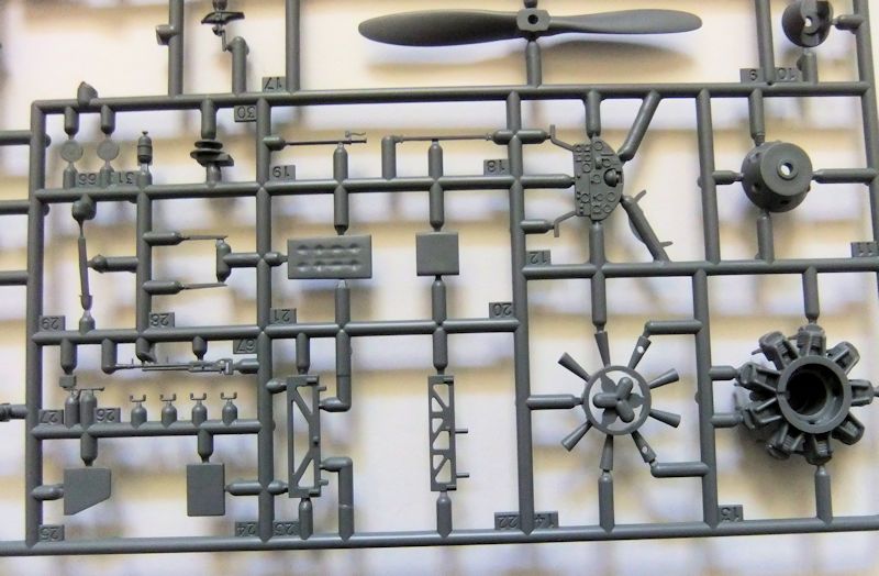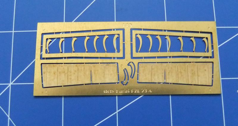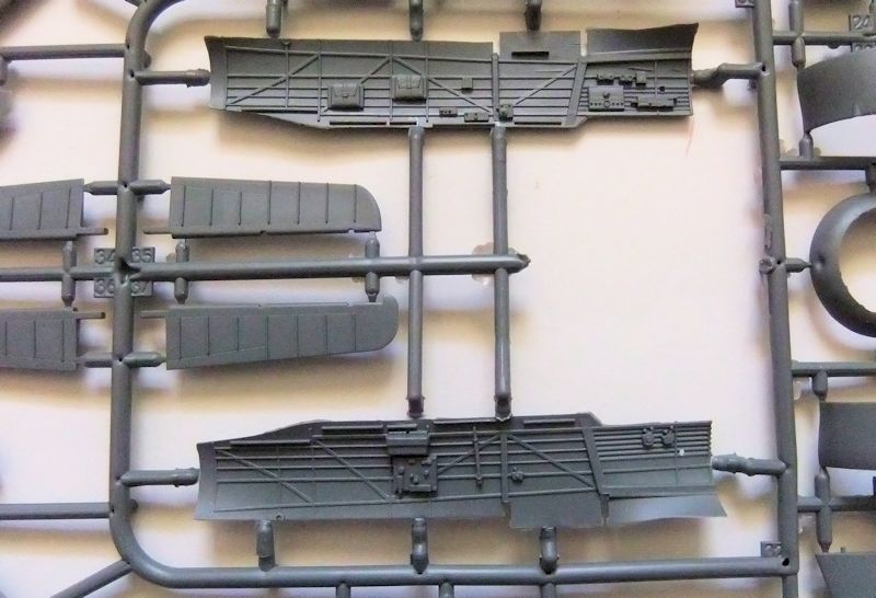 Der Bausatz ist sehr umfangreich, vor allem was die Anzahl der Einzelteile anbelangt. Auch die Detaillierung, angefangen bei dem Bristol Pegasus VIIIA 9 Zylinder Sternmotor, eine PZL Lizenzfertigung des britischen Originals, über das große, gut einsehbare Cockpit, bis hin zu dem Fahrwerk und den äußeren Gravuren ist auf Höhe der Zeit. Für die endgültige Verfeinerung dieses Modells liegen zwei kleine Platinen mit feinen Messingätzteilen im Karton. Eine für die Vorflügel.